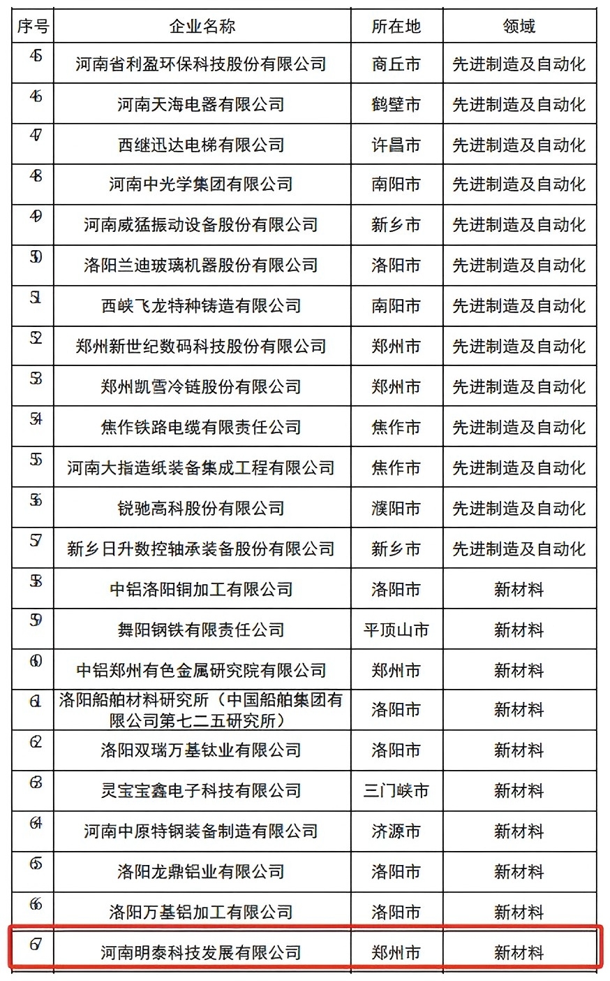 近日,河南省科技廳、省發(fā)展改革委、省財政廳、省稅務局對2024年度河南省創(chuàng)新龍頭企業(yè)名單進行公示,河南明泰科技發(fā)展有限公司(以下簡稱“明泰科技”) 成功入選2024年度河南省創(chuàng)新龍頭企業(yè)名單。