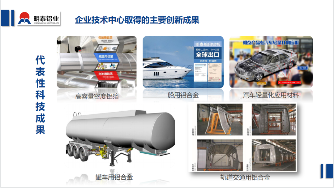 公司始終堅持“創(chuàng)新、綠色、智慧、開放”的發(fā)展理念,以創(chuàng)新為引領(lǐng),積極打造以“綠色、智慧”為中心的科技創(chuàng)新體系,深入開展“技術(shù)創(chuàng)新、工藝創(chuàng)新、產(chǎn)品創(chuàng)新、裝備創(chuàng)新”的四新活動。同時解放思想,深入與中國有色協(xié)會、中南大學等建立了長期合作關(guān)系,旗下4個子公司被認定為國家高新技術(shù)企業(yè),建成1個國家認可實驗室。依托科創(chuàng)與項目合并發(fā)力,大力發(fā)展高端鋁合金、軌道交通用鋁、新能源用鋁等高附加值產(chǎn)品,公司已取得汽車、船板、航空、潔食等產(chǎn)品認證,市場占有率穩(wěn)居前列,產(chǎn)品附加值均高于行業(yè)平均水平。
