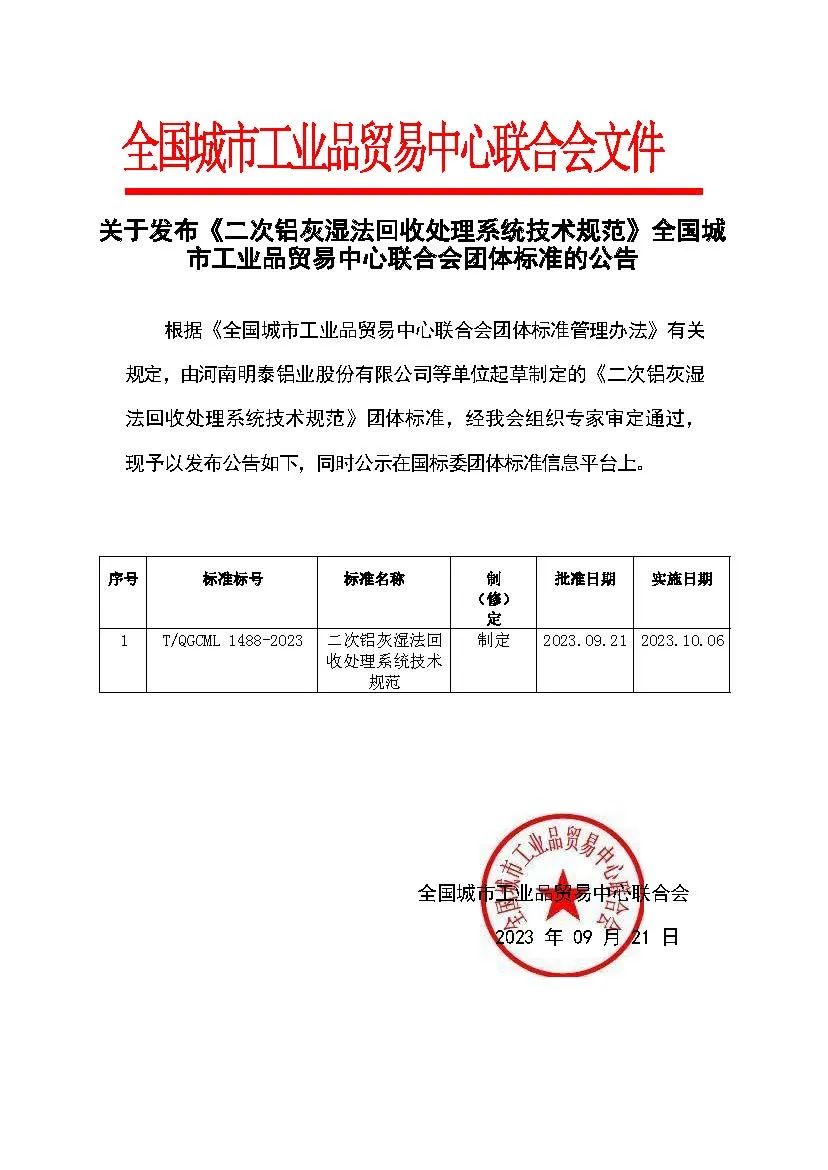 《二次鋁灰濕法回收處理系統(tǒng)技術規(guī)范》這項團體標準旨在有效地處理二次鋁灰,提高資源利用率,減少環(huán)境污染。該團標詳細規(guī)定了二次鋁灰濕法處理系統(tǒng)建設施工要求、工藝流程、設備要求、安全環(huán)保措施等方面的內(nèi)容。這項技術規(guī)范實施后,將有利于鋁灰資源化利用技術的規(guī)范化和大范圍推廣。